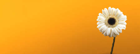 Flower banner mockup or template composition on a yellow background, copy space and place for your text, spring theme photo