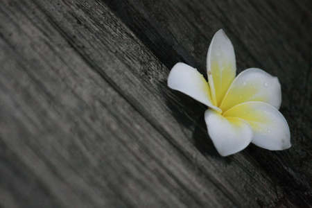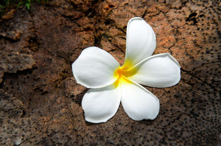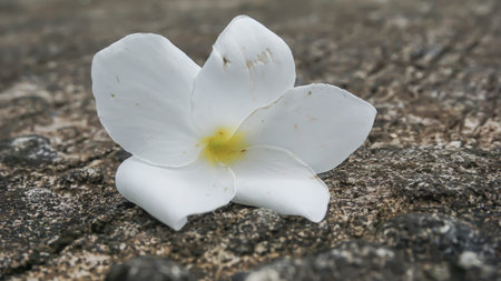 Frangipani flower on cement floor, soft focus and shallow DOF