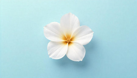 A detailed view of a pristine white petal flower featuring a luminous yellow core, set against a subtle, unobtrusive backdrop emphasizing its natural elegance.
