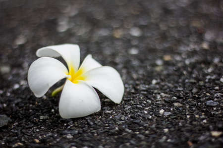 Gorgeous frangipani flower, over black background. Fresh-picked during a rain shower.