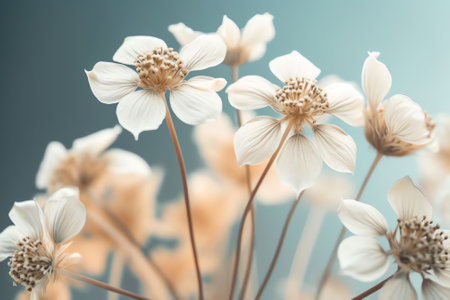 Generative AI : Beautiful white umbellate inflorescences of wild meadow grass in nature macro toned in blue color with soft focus