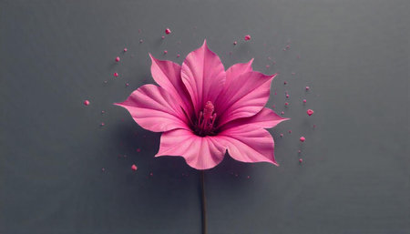 Vibrant pink flower blossoming on a muted gray background