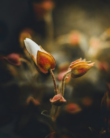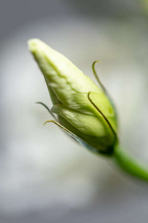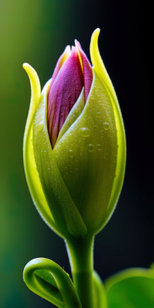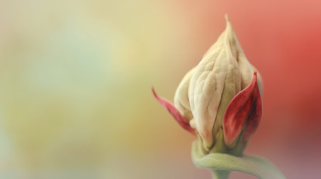 Delicate flower bud emerging against a soft backdrop during early morning light