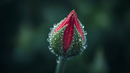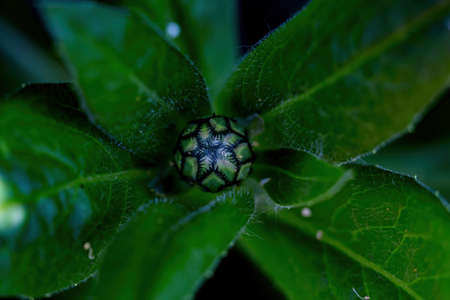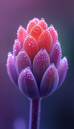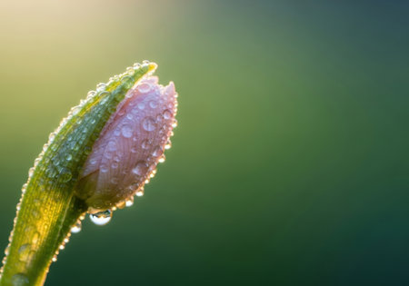 Macro photography of a flowering bud with morning dew.