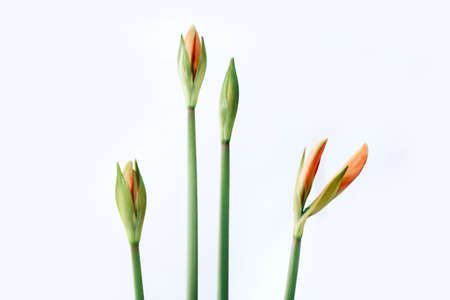 Budding Amaryllis on white background, close up