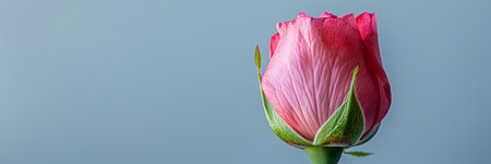 Close-Up, Isolated Bloom, Soft Lighting Delicate Beauty of a Pink Rosebud Against Serenity Blue
