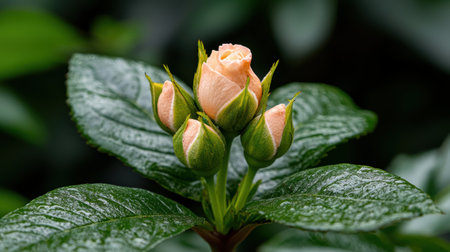 Blossoming Beauty: Captivating Close-up of Pink Flower Buds and Green Leaves