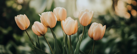 Beautiful peach tulips in a garden, close-up shot. Springtime freshness and natural beauty concept