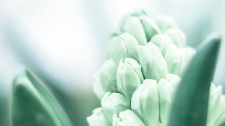 Bright white flower hyacinth in the garden in spring. white hyacinths. in the garden grows a bush of white hyacinths in the ground.