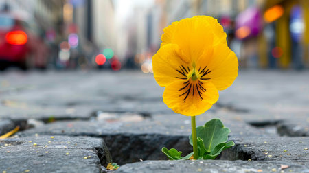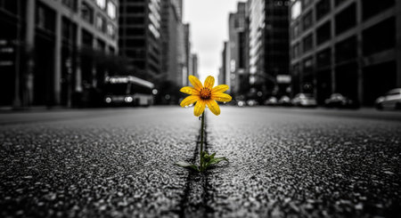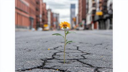 Resilient Flower Growing Through Crack in Concrete Pavement