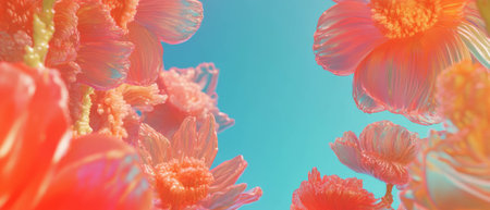 Vibrant abstract background featuring stylized flowers and petals with central empty space