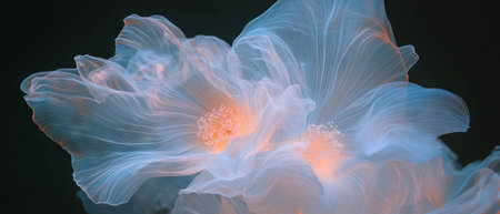 Ethereal floral abstraction with soft textures and wispy smoke trails in a mysterious atmosphere