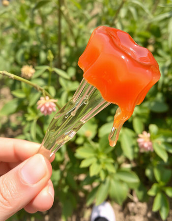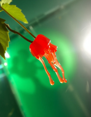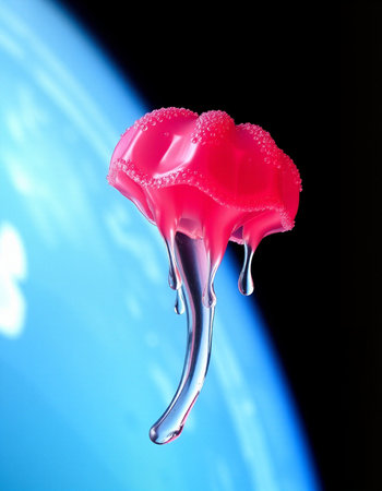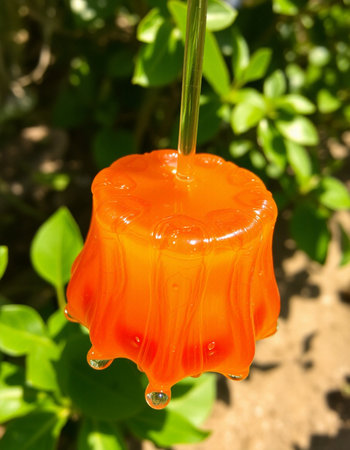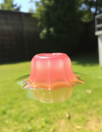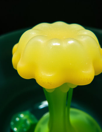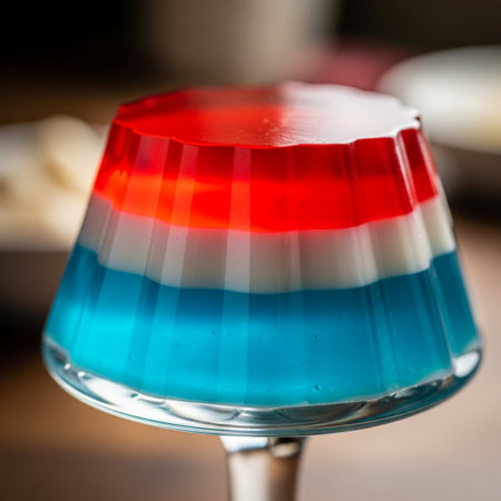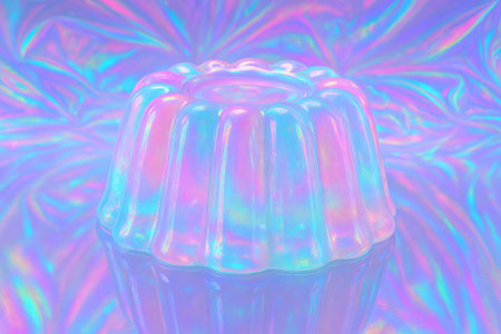 Iridescent jelly delight on reflective surface with vivid colors concept of colorful art, sweet dessert, food photography, creative design, visual aesthetics.