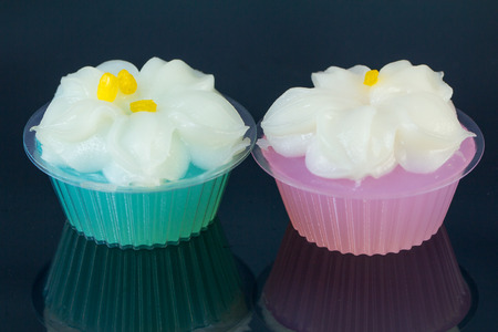 Thai dessert made from sugar and coconut in jelly-like on black background