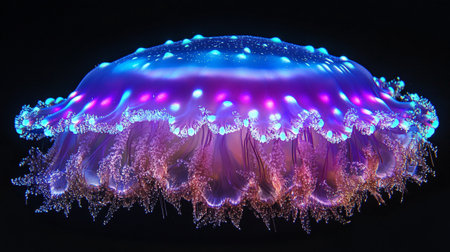 A vibrant jellyfish bloom lighting up the dark ocean depths with its brilliant hues