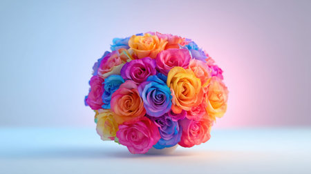 A beautiful arrangement of vibrant roses in various colors creates a stunning visual effect against a soft gradient background, perfect for decoration and celebration.
