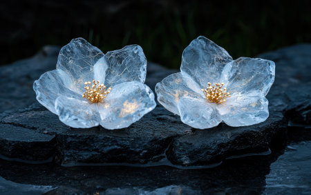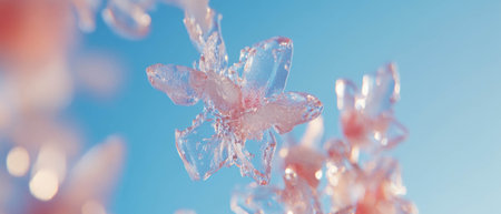 Intricate 3D ice flowers showcase fragile beauty in a cold, crystalline atmosphere