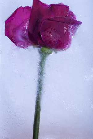 Freezing flowers close up. Frozen roses surrounded by ice.