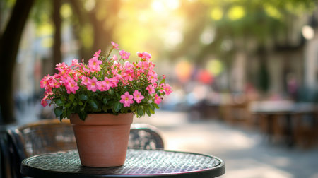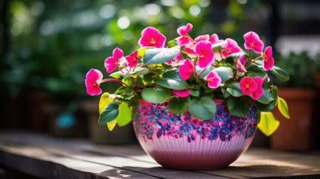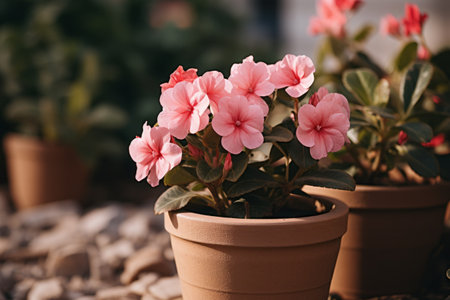 Burst of Colors: Captivating Shallow Focus Photography of a Pink Flower Plant in a Brown Pot