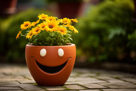 Cheerful Smiling flower pot. Potted vase. Generate Ai