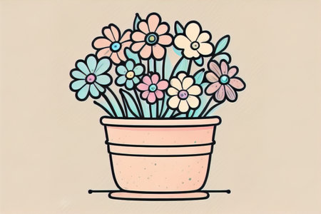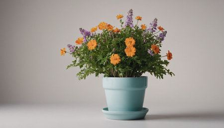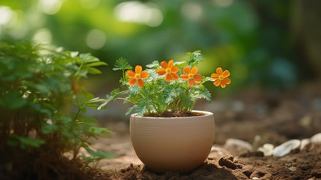 A close up of a flower pot with some flowers in it, AI