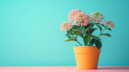 Asclepias milkweed flower in pot on minimalist vivid background.