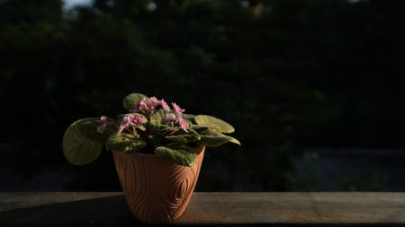 African Violet flower closeup under sunlight