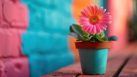 Vibrant gerbera daisy in a colorful pot