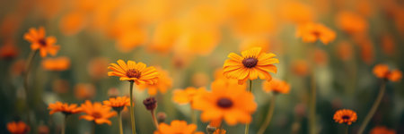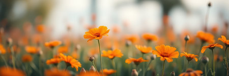 Bright orange flowers bloom in a vibrant field during springtime under soft sunlight