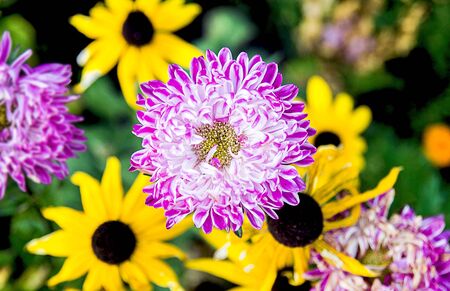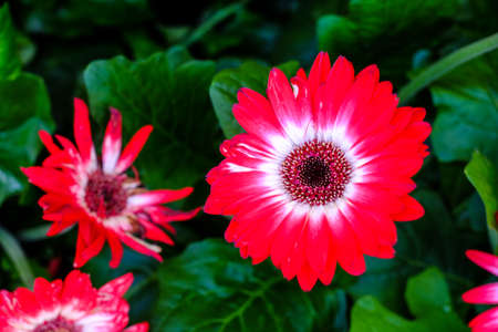 Colored Gerbera flowers blooming in the garden. Gerbera L. is a genus of plants in the Asteraceae. Selective focus. Gerbera flowers, Thailand.