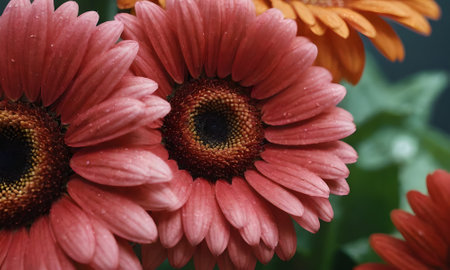 Beautiful gerbera flowers on a dark background. Close-up. generative ai