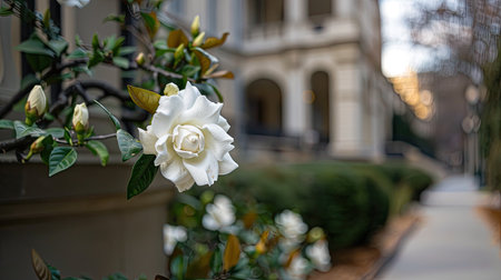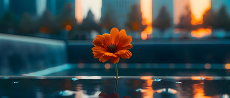 Solemn Bloom at Twilight Memorial. Concept Memorial Photography, Twilight Scenery, Somber Portraits, Floral Tributes, Reflective Moments