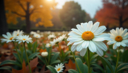 yellow flowers with the sun setting behind them, captured in the style of uhd image by chen zhen for national geographic. the dark orange and light gold hues create a mesmerizing contrast against the vibrant green foliage. this high-detailed photograph showcases accurate and luminous colors, bringing the beauty of nature to life. ai generated