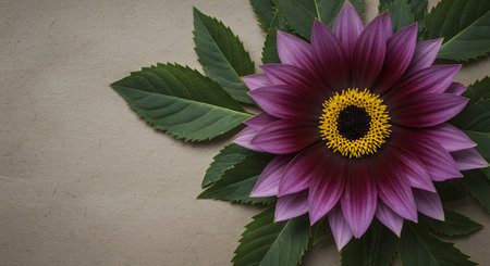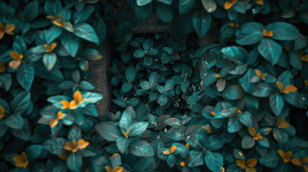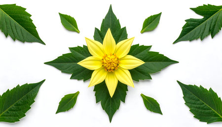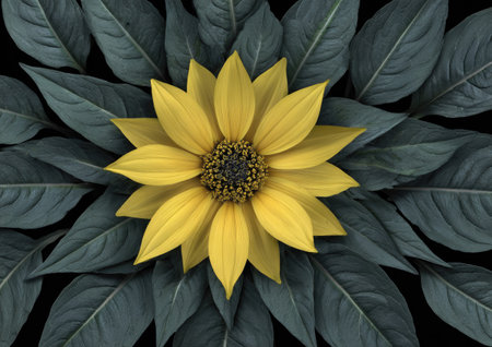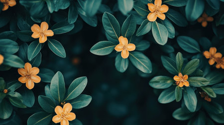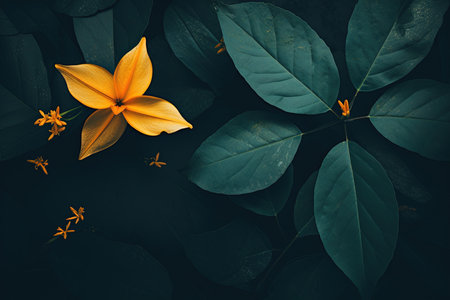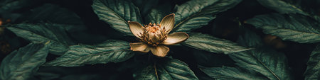 Golden Flower in Bloom Macro Details and Lush Green Leaves Create a Beautiful Natural Design
