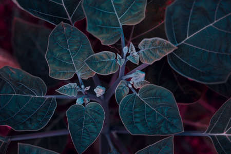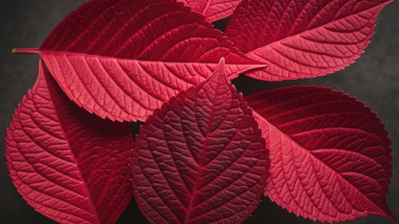 Bright redhead coleus. Plectranthus scutellarioides. Abstract red leaf texture background. Dark art moody floral. Vinous nature decor for presentation of natural cosmetics or wallpaper desktop