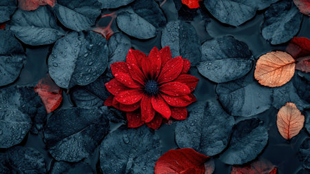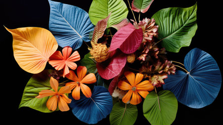 Celebrate spring's renewal with this vibrant Easter floral arrangement A symphony of blues and reds embodies rebirth, perfect for backgrounds and projects seeking nature's touch Explore the intricate details of each leaf and petal in this high-quality image showcasing unity and splendor AI Generative