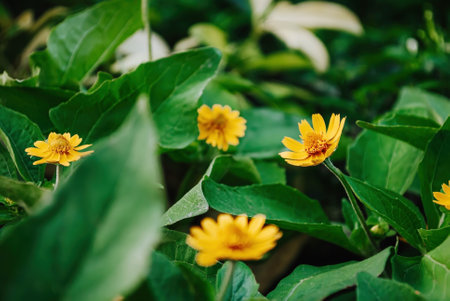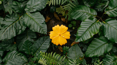 Vibrant Yellow Flower Blooms Among Lush, Green Tropical Foliage in Vivid Natural Beauty