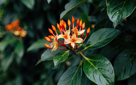 Orange flower in the garden, Thailand. (Ixora coccinea)