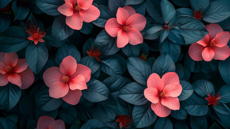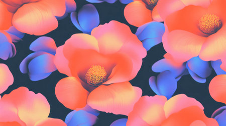 This artistic floral pattern showcases vibrant pink and orange flowers amidst dark green leaves, creating a stunning visual effect perfect for various design applications.