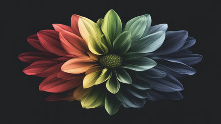 Abstract representation of colorful flower petals creating a central focal point on dark background