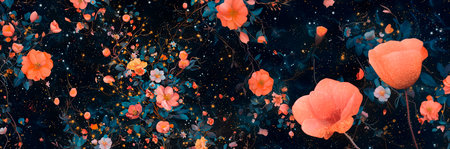 Cascade of luminous flower petals with a vibrant glow in softly lit surroundings