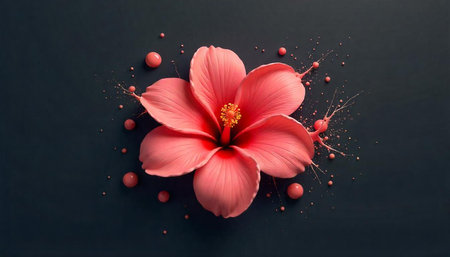 Elegant hibiscus flower with paint droplets on dark background