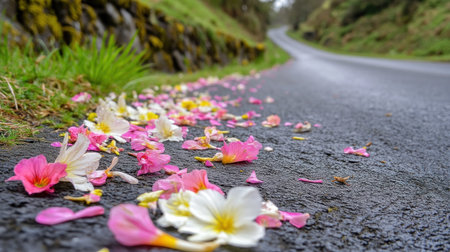 floral parade through a countryside road, petals covering the street --chaos 30 --ar 16:9 --v 6.1 Job ID: ef208921-2bd5-423c-9d44-de875d2d1da0