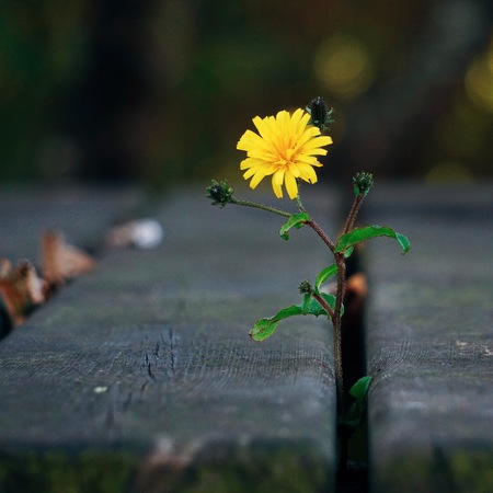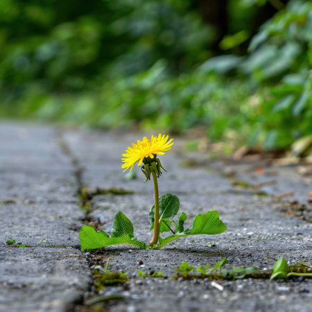 Resilient Flower Growing Through Crack in Concrete Pavement