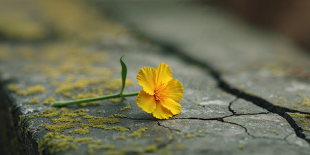Bright Yellow Flowers Growing Through Cracks in Concrete, Symbolizing Hope and Resilience in Life