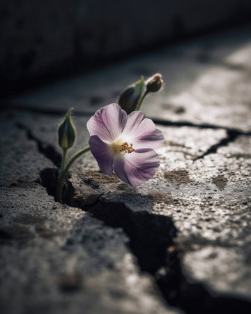The beauty of flowers is amplified when growing through the asphalt Creating using generative AI tools