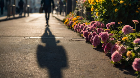 Cityscape Blossoms: Delicate Petals Dance on the Wind, Creating a Serene and Magical Scene