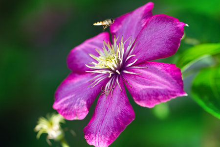 Honey bee on a flower collecting nectar. Macro shot in summer sunshine