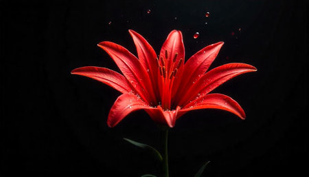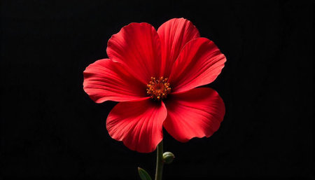 A striking red flower stands boldly against a dark background, highlighting its vivid colors and intricate details, perfect for themes of beauty and nature.