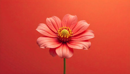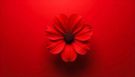 Red Flower Blossom on Monochrome Background, Floral Still Life